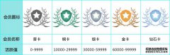 会员级别共分为5个等级,分别为:普卡、铜卡、银卡、金卡、钻石卡。